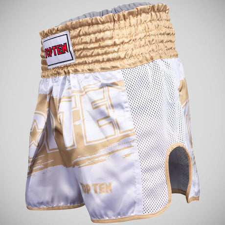 Top Ten Power Ink Golden Star Kickboxing Shorts White/Gold