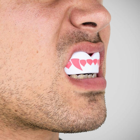 White/Pink SafeJawz Extro Pink Fangz Mouth Guard