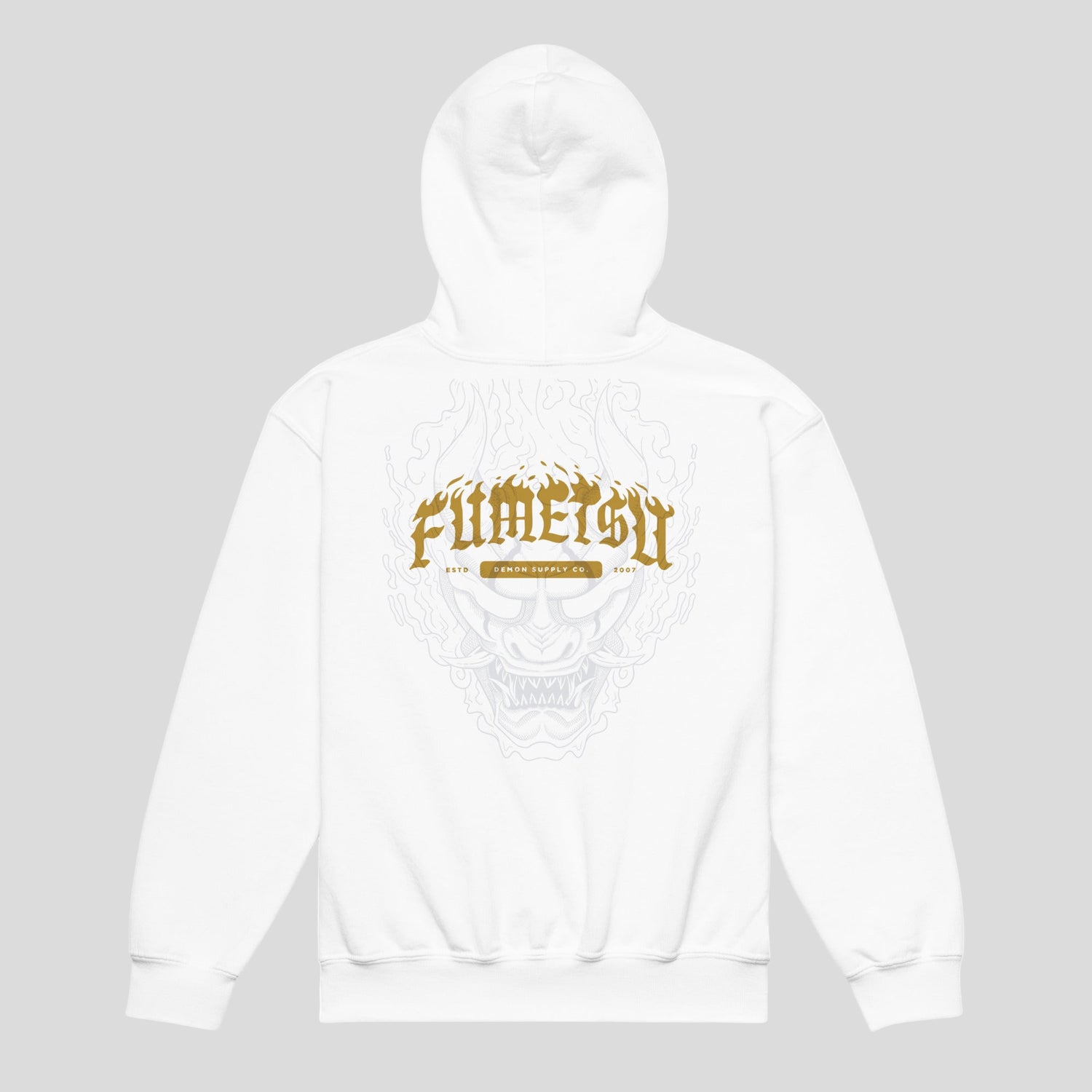 Fumetsu Oni Demon Kids Hoodie White - XS is backordered and will ship as soon as it is back in stock.