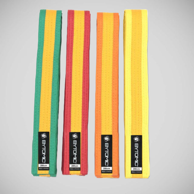 Green/Gold Bytomic 100% Cotton Gold Stripe Martial Arts Belt