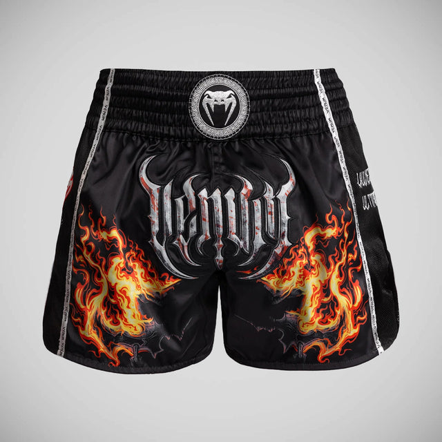 The Venum Gladiator 5.0 Muay Thai Shorts are perfect for fighters looking to dominate the ring. With striking neon orange and black graphics, along with the iconic Venum logo and Roman-inspired designs, these shorts truly embody discipline and courage.
