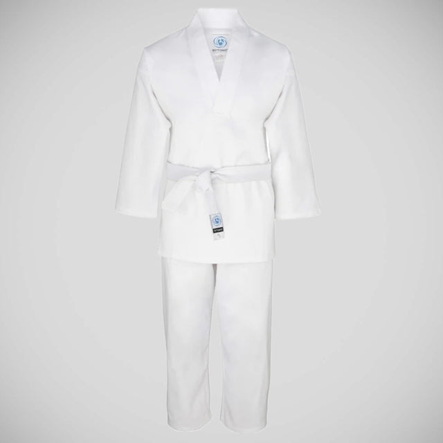 The strong and trendy White Bytomic Kids V-Neck Uniform is a must-have for ambitious children martial artists. This adaptable outfit is suitable for a variety of martial arts disciplines, including karate, taekwondo, and judo.
