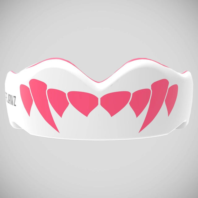 White/Pink SafeJawz Extro Pink Fangz Mouth Guard